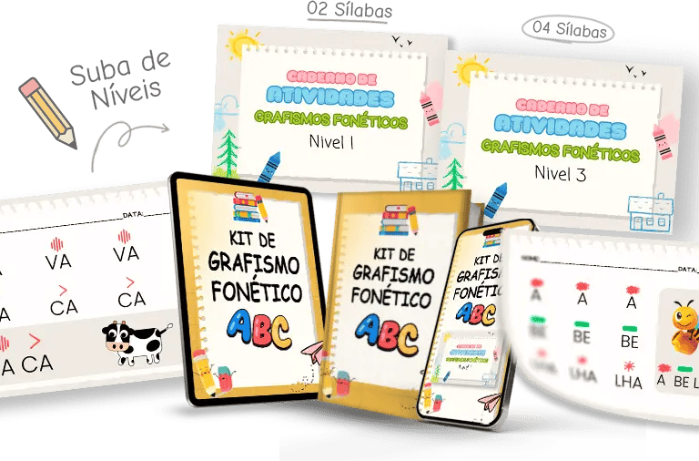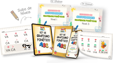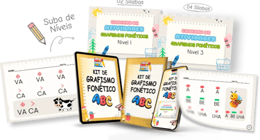 Com o Kit de Grafismo Fonético, baseado no método americano de alfabetização, seu filho aprende a ler até 5x mais rápido — de forma divertida, simples e eficaz, direto de casa!