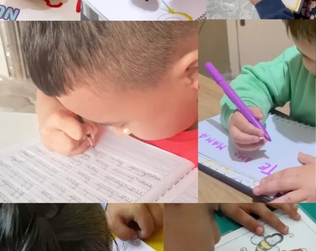 Ao traçar linhas, curvas e padrões fonéticos, ela fortalece as conexões cerebrais responsáveis pela leitura,
